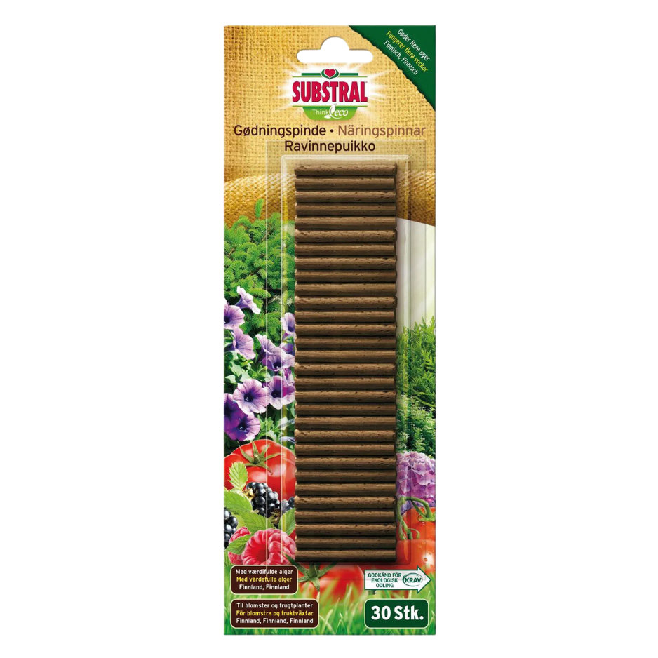 Gör det enkelt att gödsla! Substrals organiska och KRAV-märkta näringspinnar ger optimal och långtidsverkande näring till dina växter i upp till två månader. Stick bara ner pinnarna i jorden.