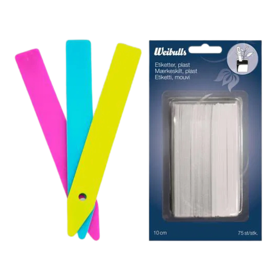 Glöm aldrig vad du sått! Dessa praktiska plastetiketter är idealiska för att hålla reda på dina odlingsprojekt. Förpackningen innehåller 75 etiketter i en färgglad mix av grå, lila och grön, vilket gör det enkelt att färgkoda dina olika planteringar.