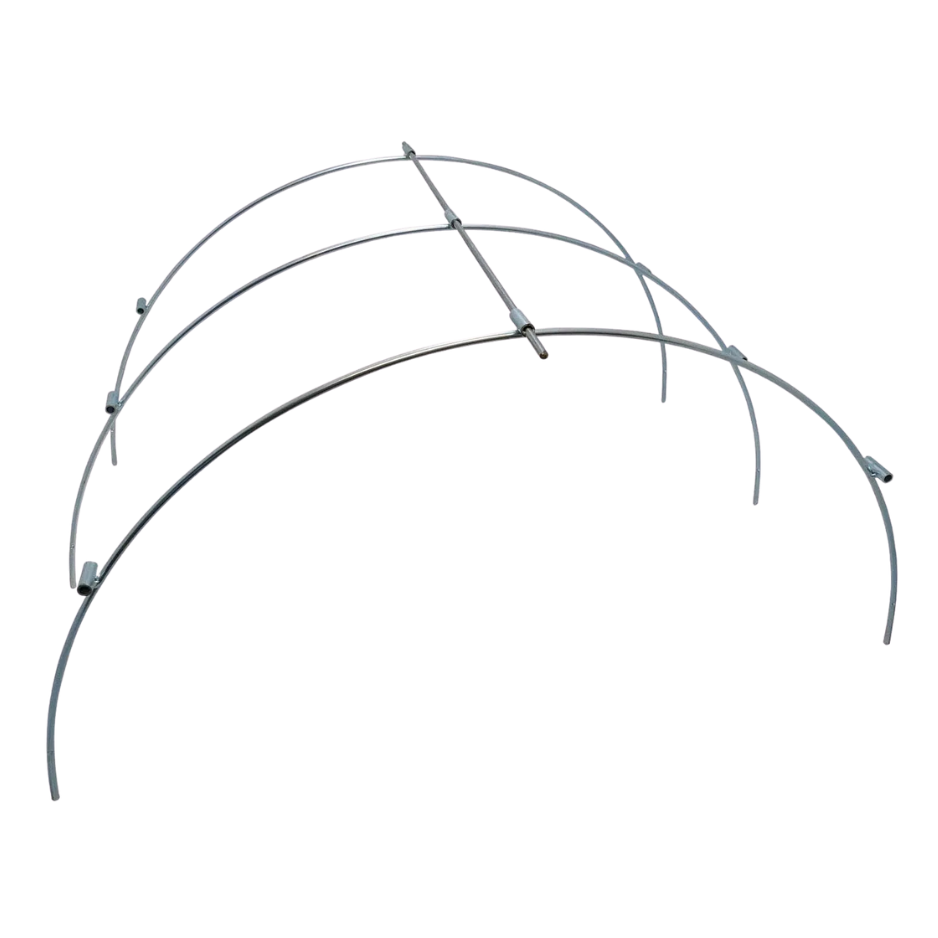En mycket stabil konstruktion bestående av tre bågar och tre överliggande medar. Setet bygger enkelt en stabil tunnel för att täcka din odling med väv eller nät. Passar utmärkt till pallkragar i standardmått (120 cm) eller direkt på friland.